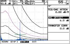 l40 DB動(dòng)態(tài)多曲線DAC/TCG選項(xiàng)可修正材料衰減和波形發(fā)散引起的距離/振幅變化,并能單獨(dú)編輯或插入紀(jì)錄的回波。一次*多可在屏幕上畫出4條DAC曲線,從而在原始紀(jì)錄的DAC曲線外顯示+/- dB曲線?杉o(jì)錄多達(dá)16個(gè)數(shù)據(jù)點(diǎn),每微秒*大的曲線斜度為12dB。符合或超過了TCG的工業(yè)要求。